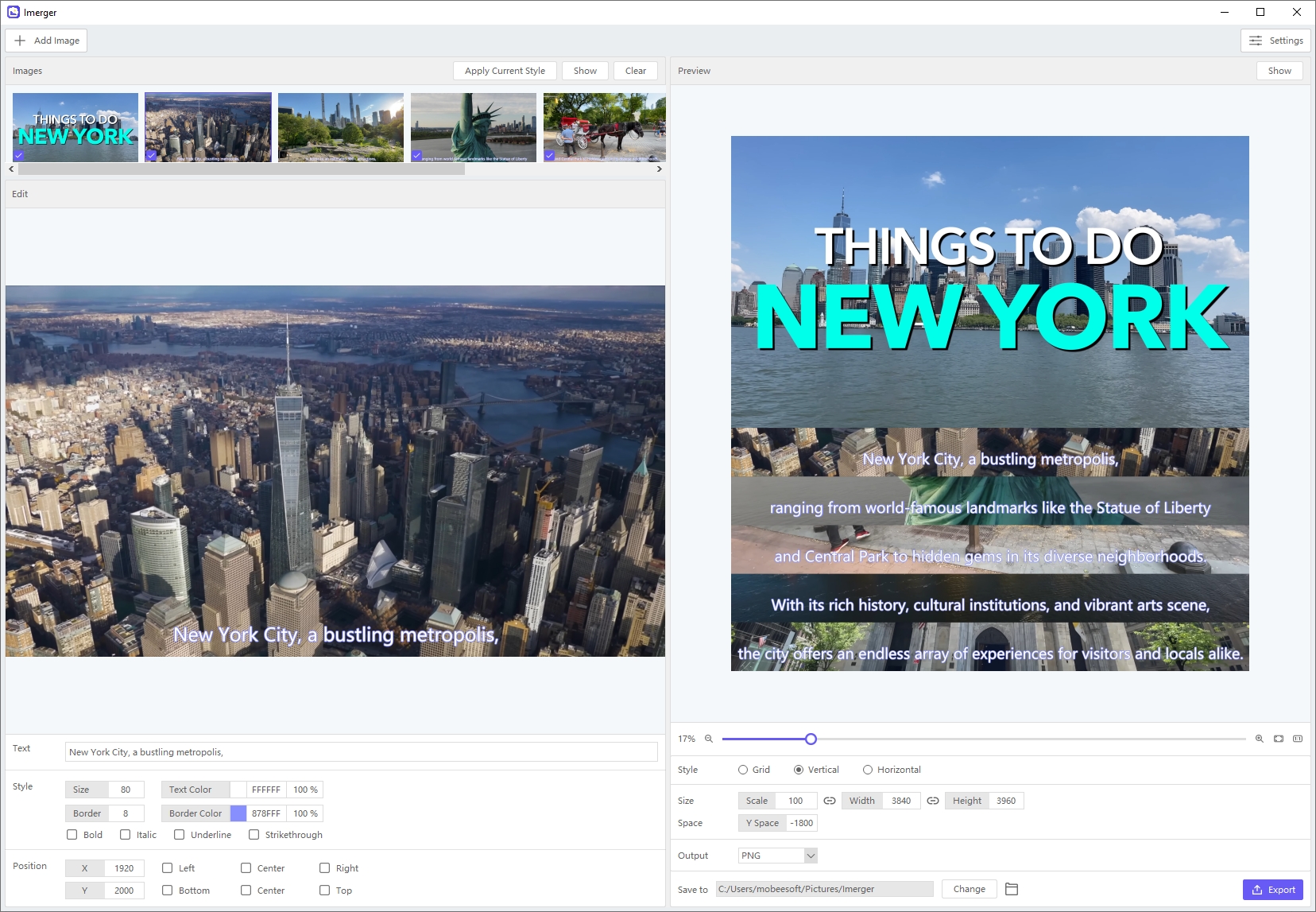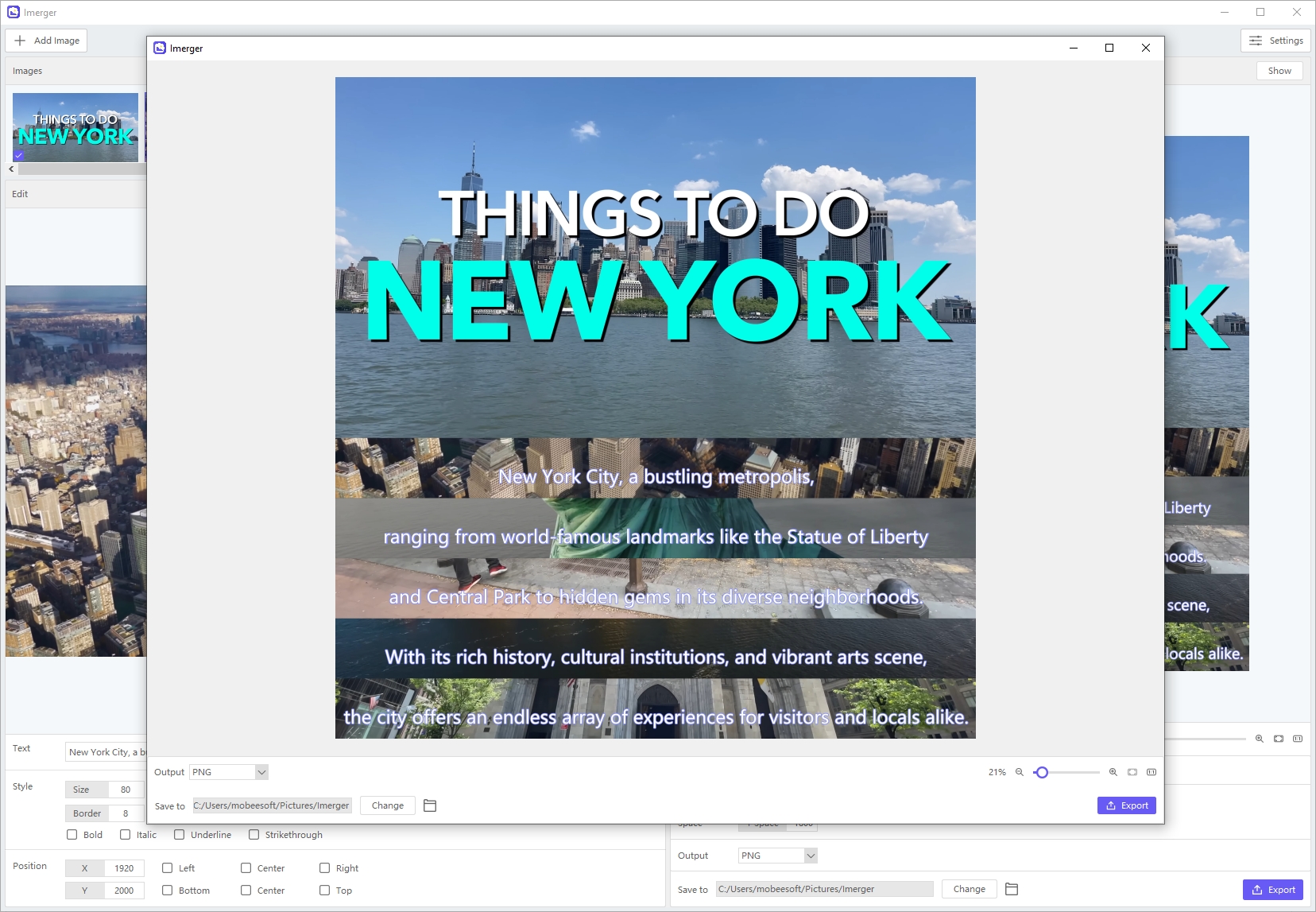 Speichern und teilen Sie Ihre zusammengefügten Bilder sofort mit unserer Ein-Klick-Exportfunktion.