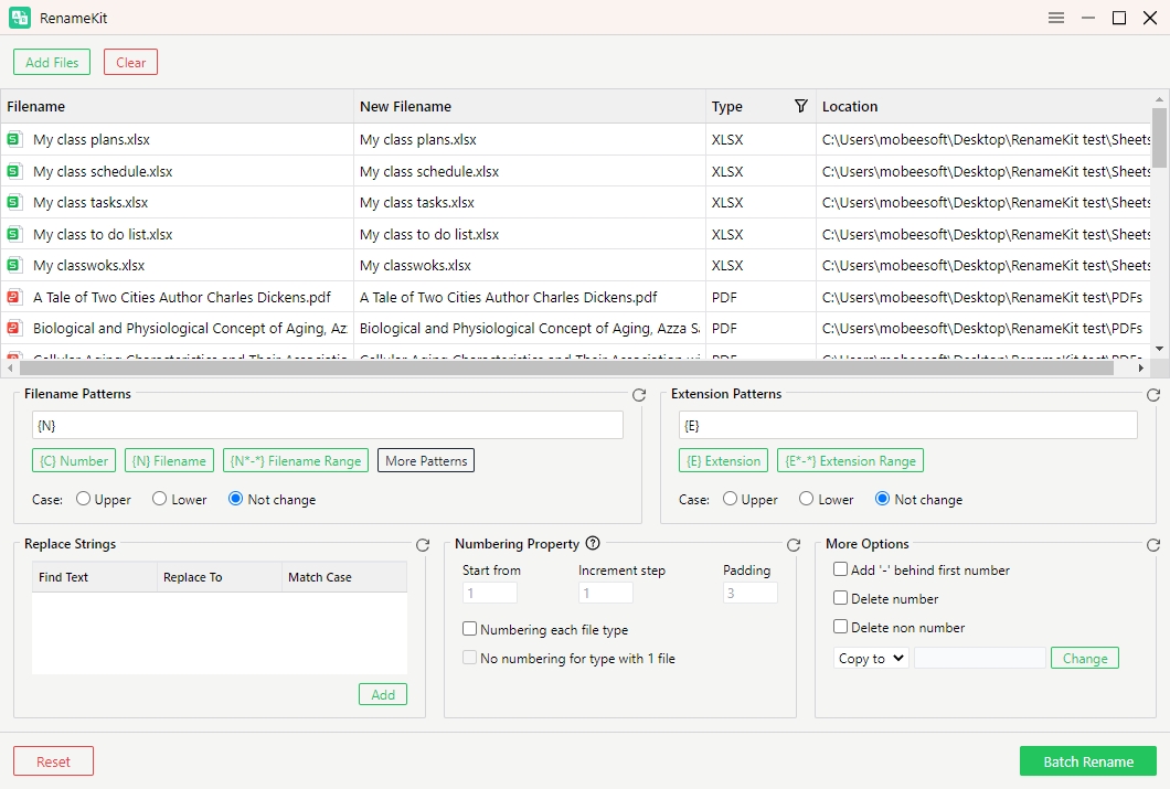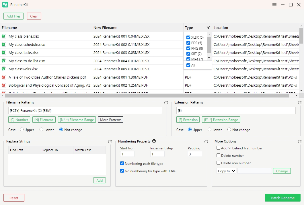 - Unterstützt das Umbenennen von Dateien verschiedener Typen.