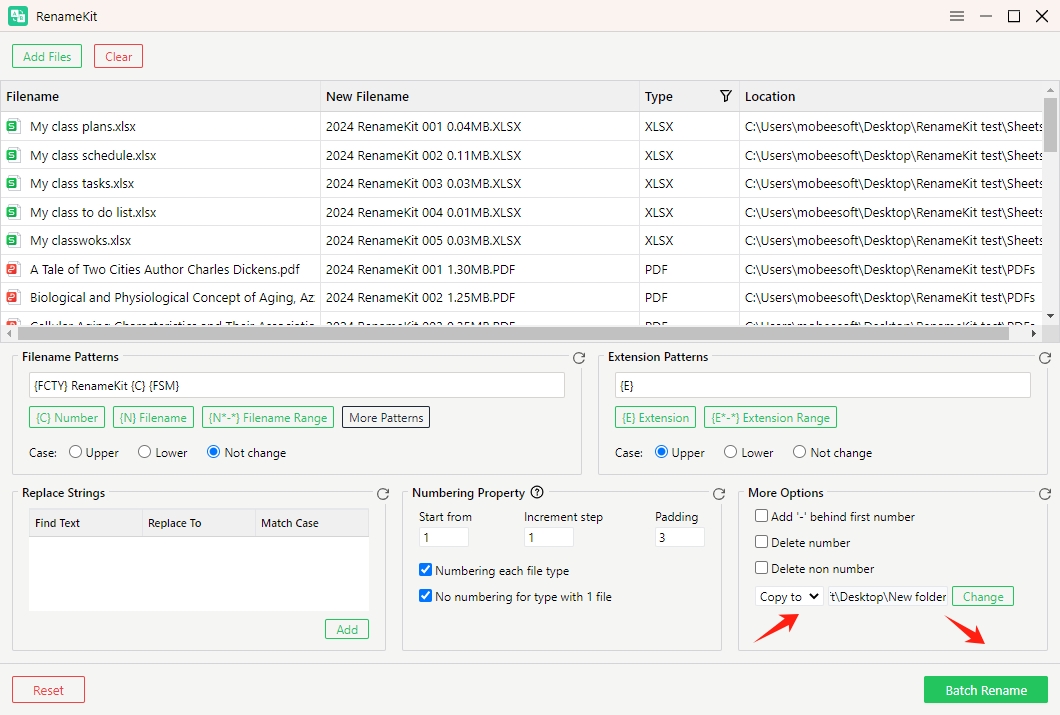 - Erstellen Sie Umbenennungsmuster basierend auf Ihren Anforderungen.